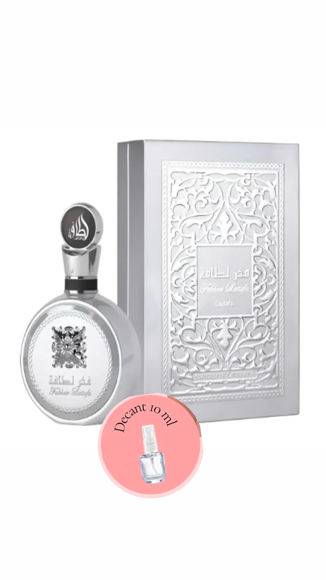 Fakhar Platin de Lattafa Perfumes é um perfume Aromático Fougére Compartilhável. Esta é uma nova fragrância. Fakhar Platin foi lançado em 2025. As notas de topo são: Bergamota, Pimenta Rosa e Cardamomo. As notas de coração são: Goiaba, Lavanda e Gengibre. As notas de fundo são: Incenso, Palo Santo e Sândalo.