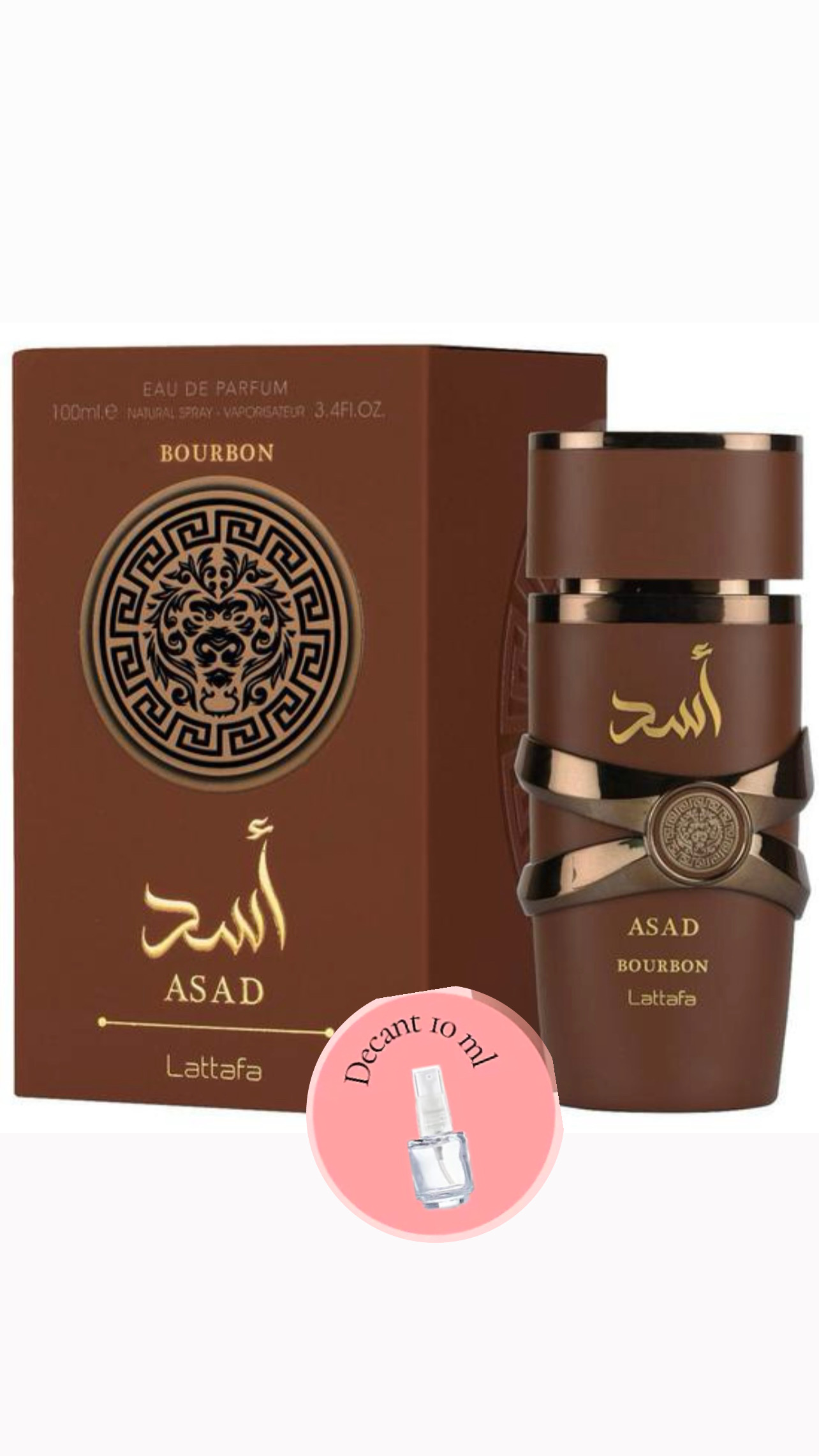 Asad Bourbon de Lattafa Perfumes é um perfume Oriental Especiado Masculino. Esta é uma nova fragrância. Asad Bourbon foi lançada em 2025. As notas de topo são: Lavanda, Ameixa Mirabelle e Pimenta Rosa. As notas de coração são: Cacau, Noz-moscada e Davana. As notas de fundo são: Baunilha de Bourbon, Âmbar e Vetiver.