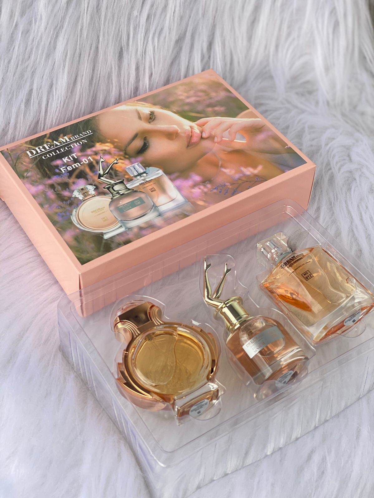 Kit contém 3 perfumes femininos Dream Brand Collection de 25 ml cada:
