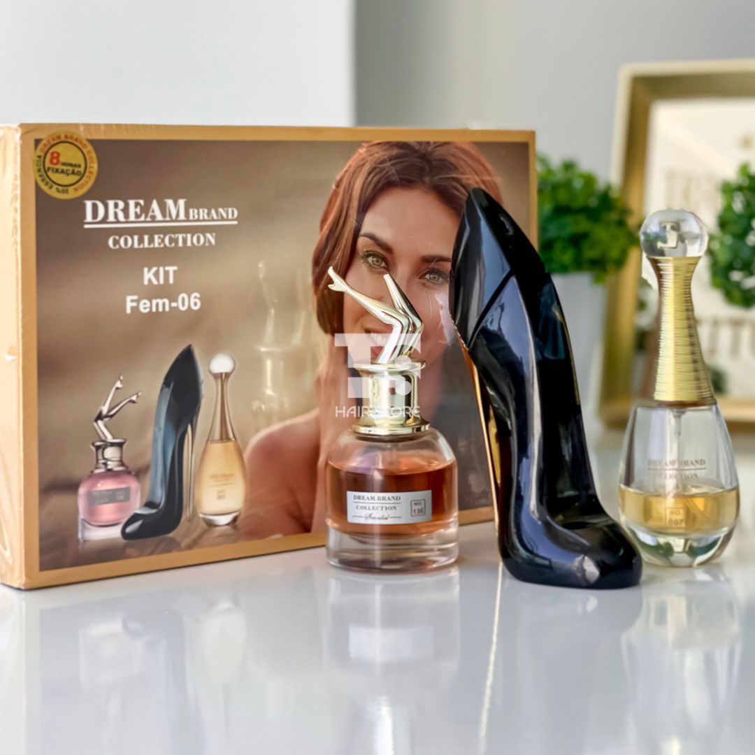 Kit contém 3 perfumes femininos Dream Brand Collection de 25 ml cada: