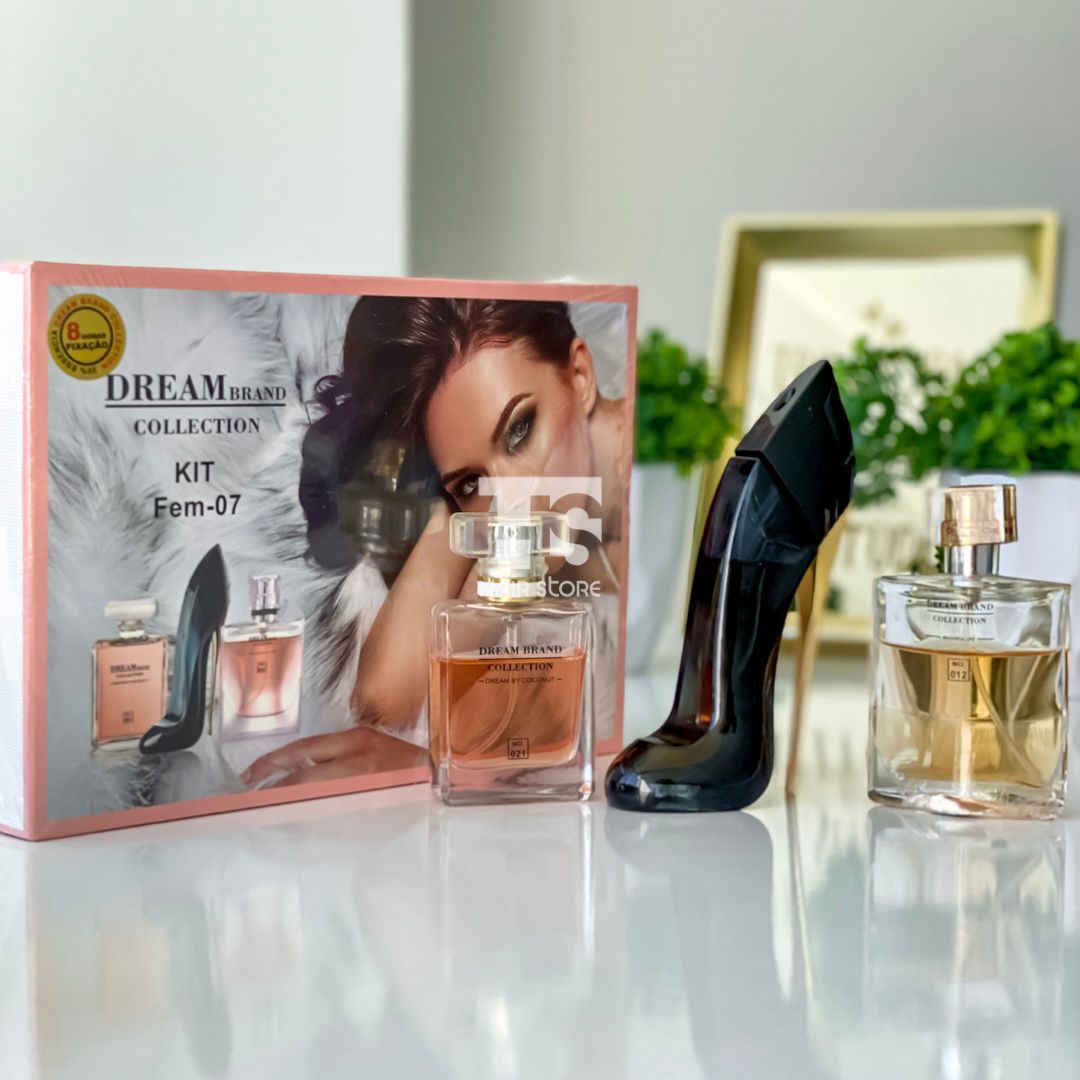Kit contém 3 perfumes femininos Dream Brand Collection de 25 ml cada: