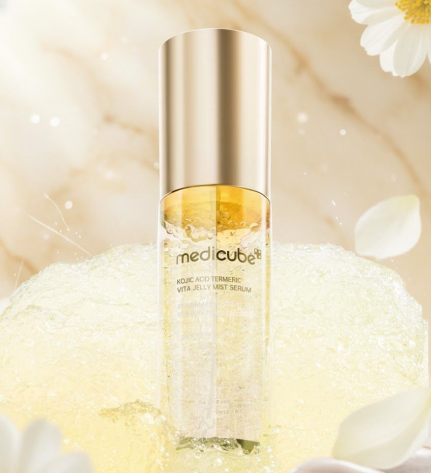 O Medicube Kojic Acid Turmeric Vita Jelly Mist Serum (100ml) é um sérum em bruma com textura gelatina, formulado com ácido kójico, cúrcuma, niacinamida e vitamina C. Ele clareia manchas escuras, uniformiza o tom da pele, hidrata profundamente e acalma a vermelhidão, proporcionando um brilho radiante imediato. É ideal para retoques ao longo do dia, podendo ser usado antes ou depois da maquiagem.