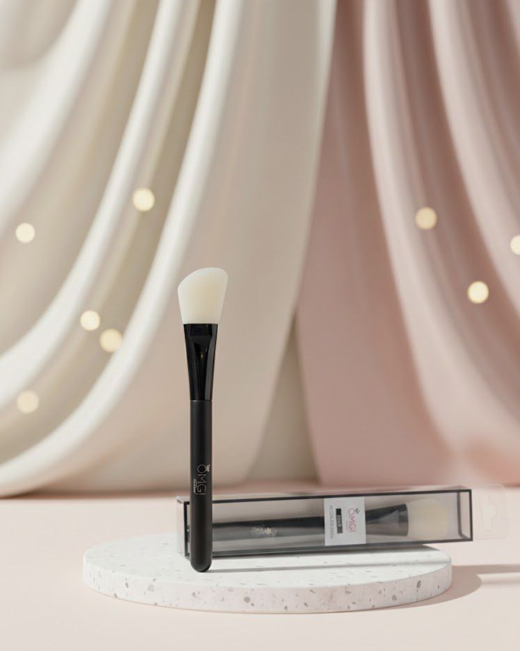 Pincel de cerdas que facilita a aplicação em todas as partes do rosto, não absorvendo e nem desperdiçando produto; perfeito para aplicar produtos em gel e líquidos