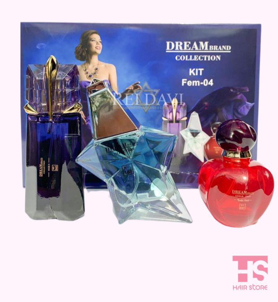 Kit contém 3 perfumes femininos Dream Brand Collection de 25 ml cada: